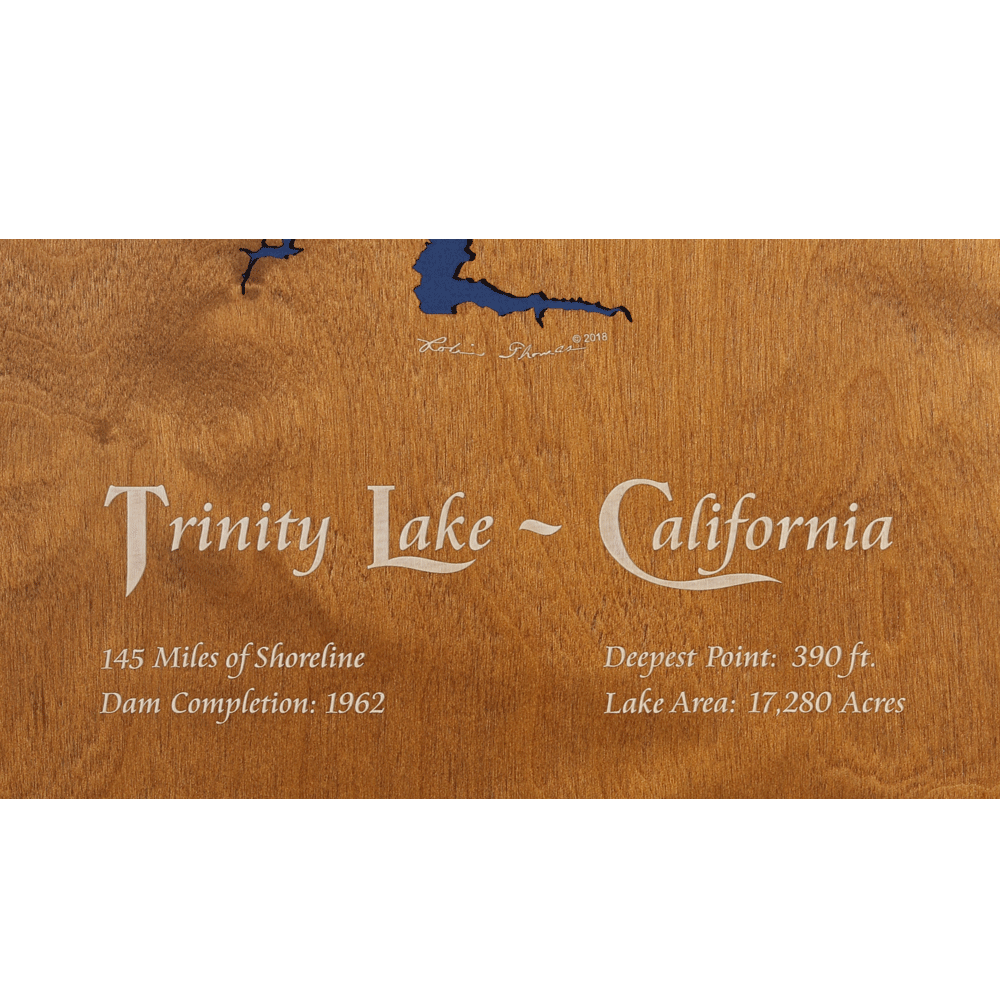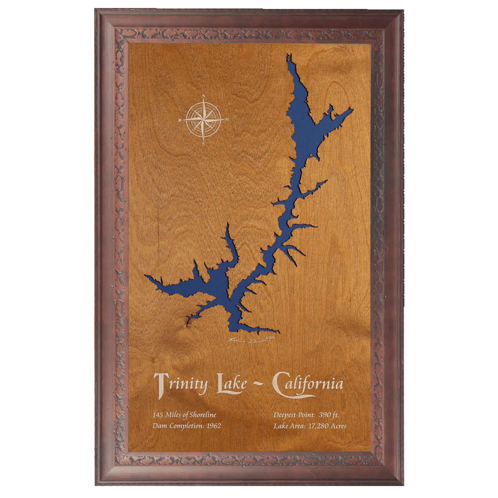 Trinity Lake, California Stained Wood and Dark Walnut Frame Lake Map Silhouette