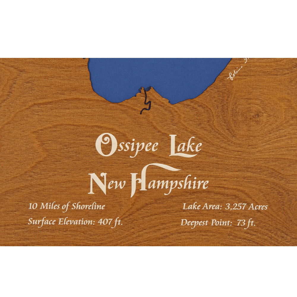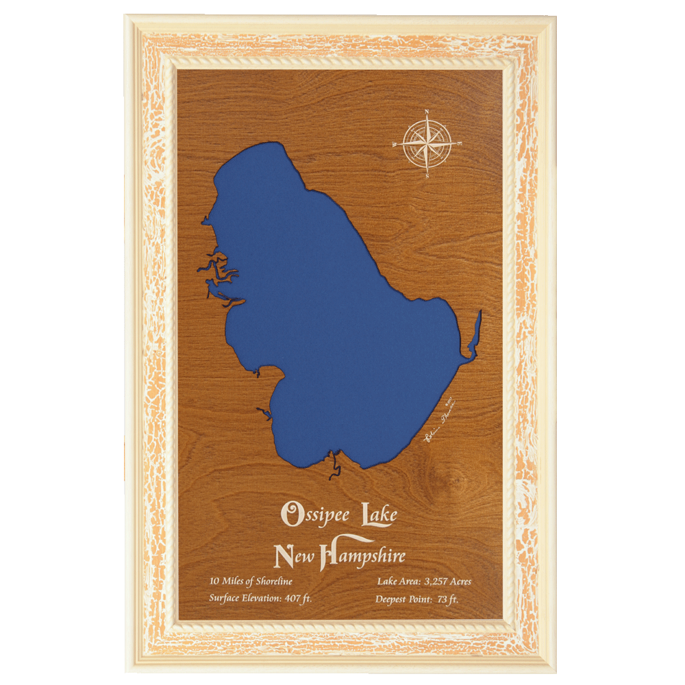 Ossipee Lake, New Hampshire Stained Wood and Distressed White Frame Lake Map Silhouette